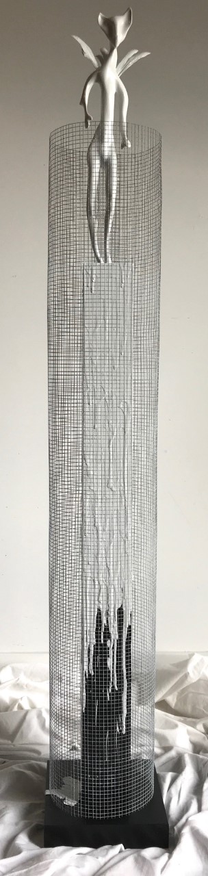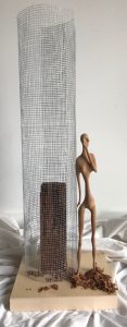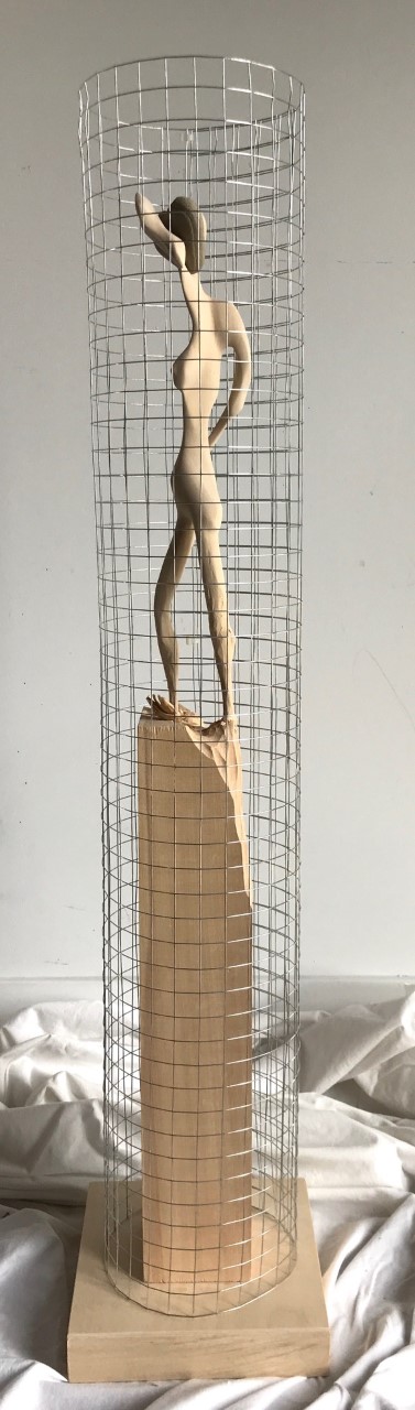 CARTELS: « IL FUT UN TEMPS OÙ J’Y ÉTAIS, OÙ J’Y SUIS, OÙ JE N’Y SERAI PLUS » Athéna Acajou, pruche, merisier et cuir (grillage) 16’’ X 8’’ X 48’’ Jouvence Acajou, pin, merisier, photo sur papier et souche (grillage) 12’’ X 6’’ X 39 1/2’’ Muladhara Acajou, pruche, merisier, peinture latex, racines (grillage) 12’’ X 12’’ X 43’’ Cassandre Acajou, corde de jute, pruche et merisier (grillage) 12’’ X 9’’ X 48’’ Sisyphe Tilleul, merisier et roche (grillage) 8’’ X 8’’ X 35’’ Pandore Acajou, merisier (grillage) 12’’ X 10’’ X 20’’ Metta Tilleul, frêne blanc, merisier et peinture latex (grillage) 8’’ X 8’’ X 48’’